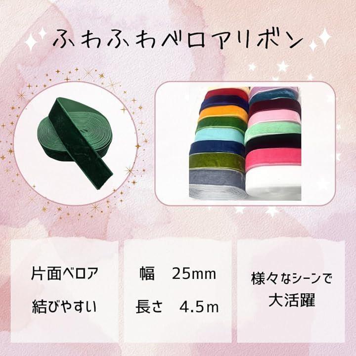 「KAZARI日和 ベロアリボン」は、上品な光沢と柔らかな質感が特徴のベルベット素材を使用した幅25mmのリボンです。