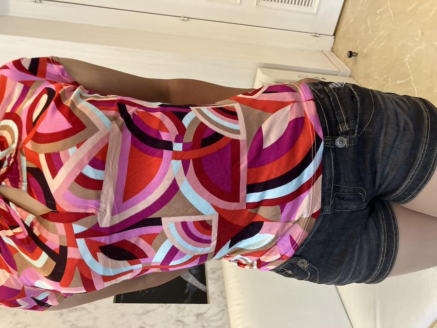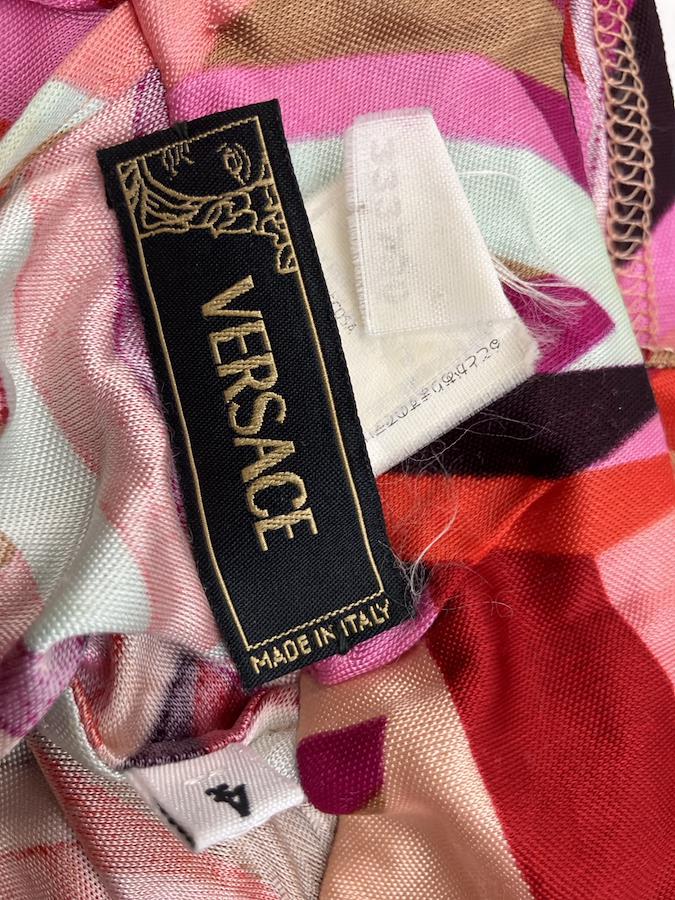 【商品説明】華やかなピンク系ジオメトリック柄が目を引くヴェルサーチ(VERSACE)のトップスと、バーバリーブルーレーベル(BURBERRY BLUE LABEL)のブラックショートデニムを組み合わせた、高級感漂うセットコーデです。トップスは艶やかな質感と伸縮性のある生地で、体のラインに美しくフィット。デニムはしっかりとした素材感ながら柔らかく、動きやすさとスタイルアップを両立しています。