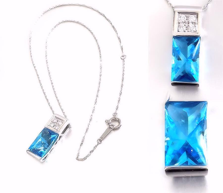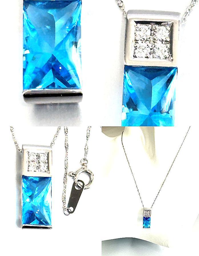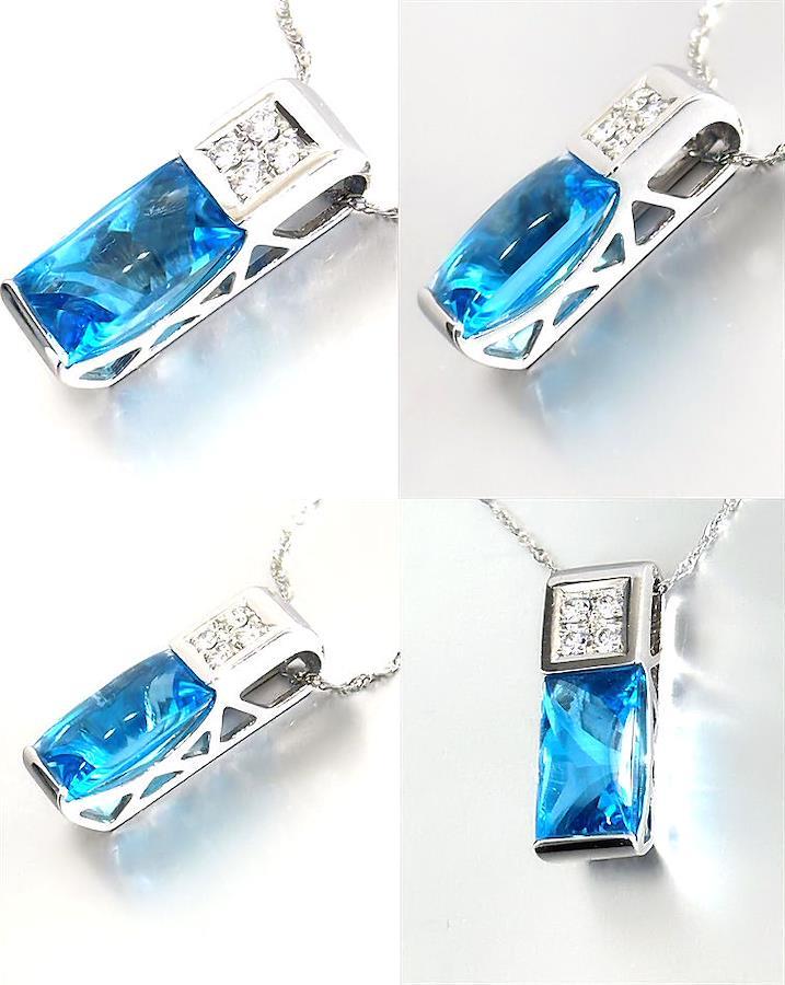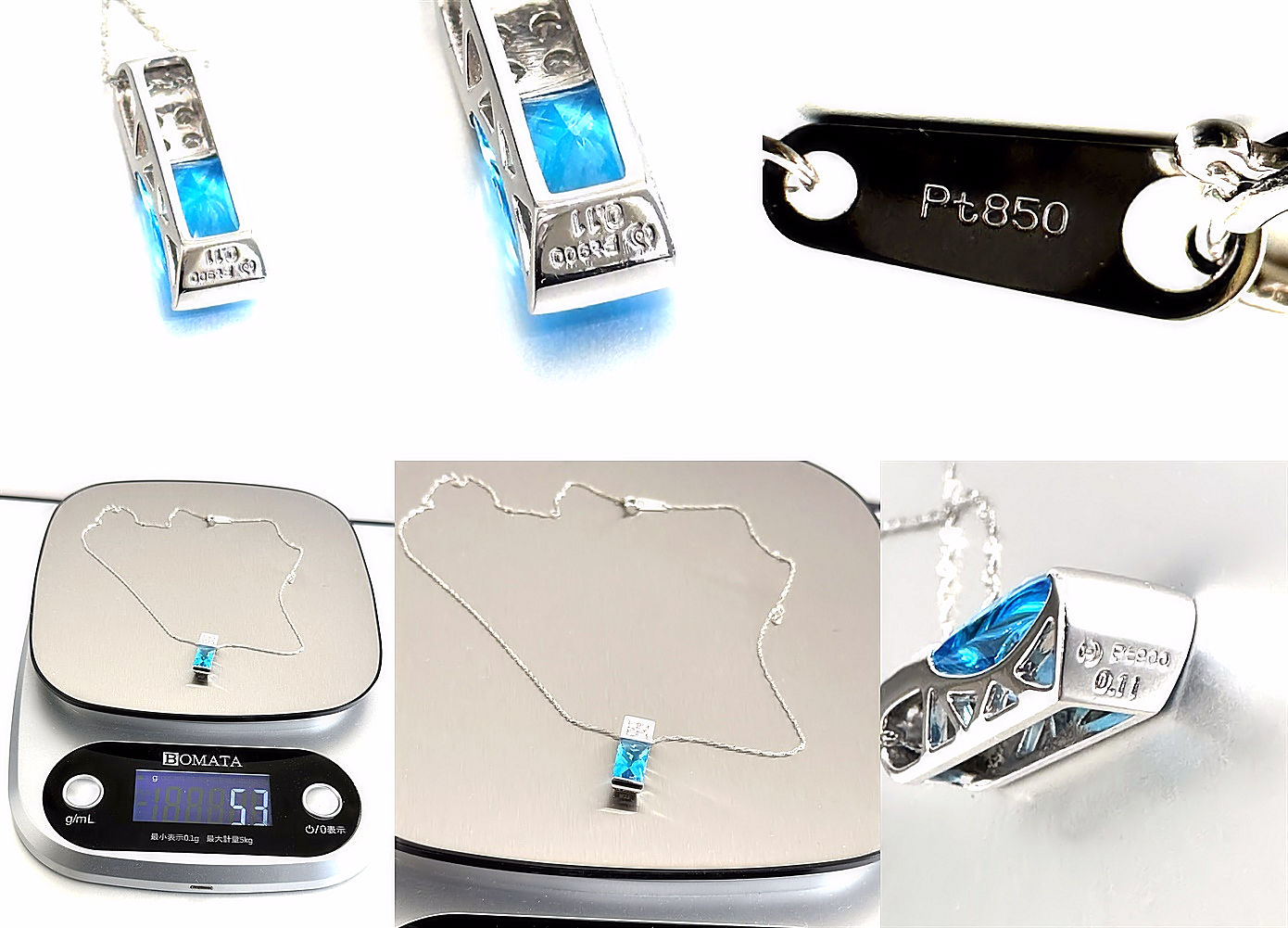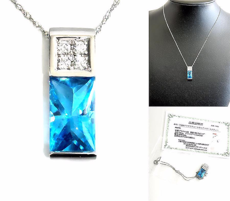 上質な輝きを放つプラチナ素材に、クラリティAクラスの田崎真珠の厳選された上質なダイヤモンド4Pと、大粒ブルートパーズを重ね合わせた、上品で高級感あるダイヤモンドネックレス。