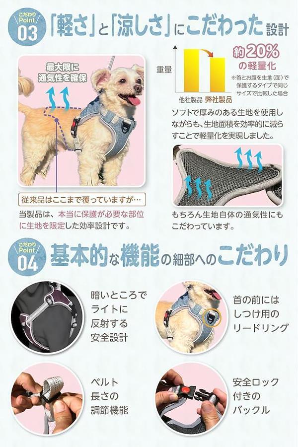 また、ワンちゃんにとって本当に保護が必要な部分にはソフトで通気性の良い生地を使用し、保護が必要ない部分は生地をなくして軽量化しました。