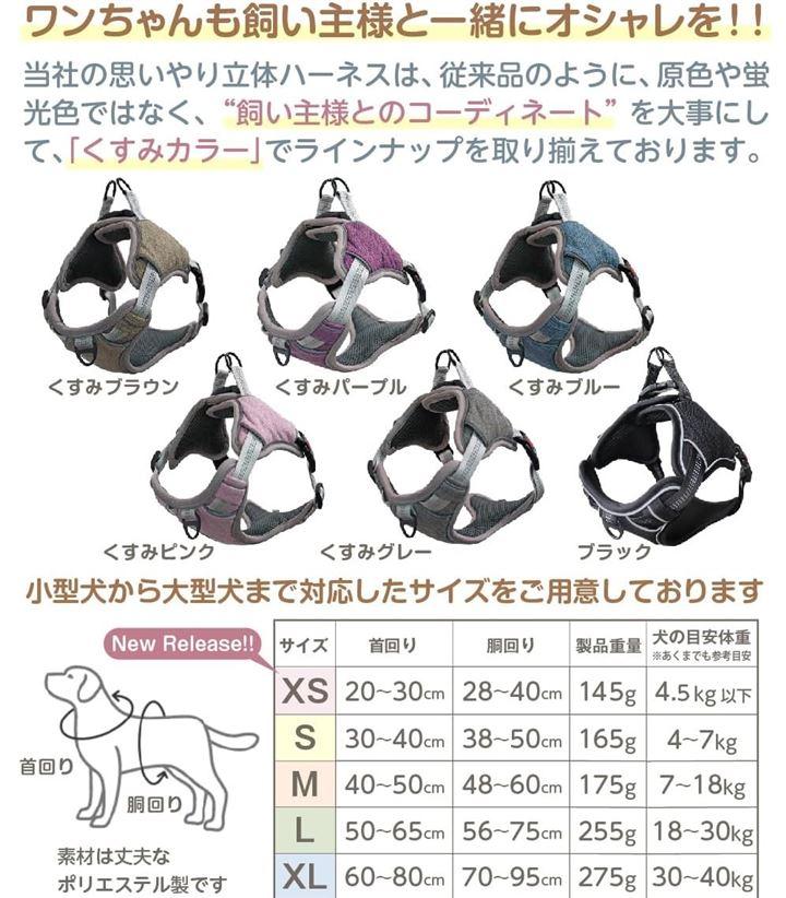 従来の犬用ハーネスのような原色や蛍光色ではなく、飼い主様とのコーディネートを楽しめるくすみカラー“を採用しました。