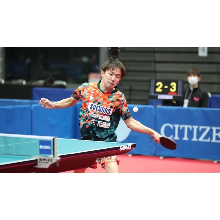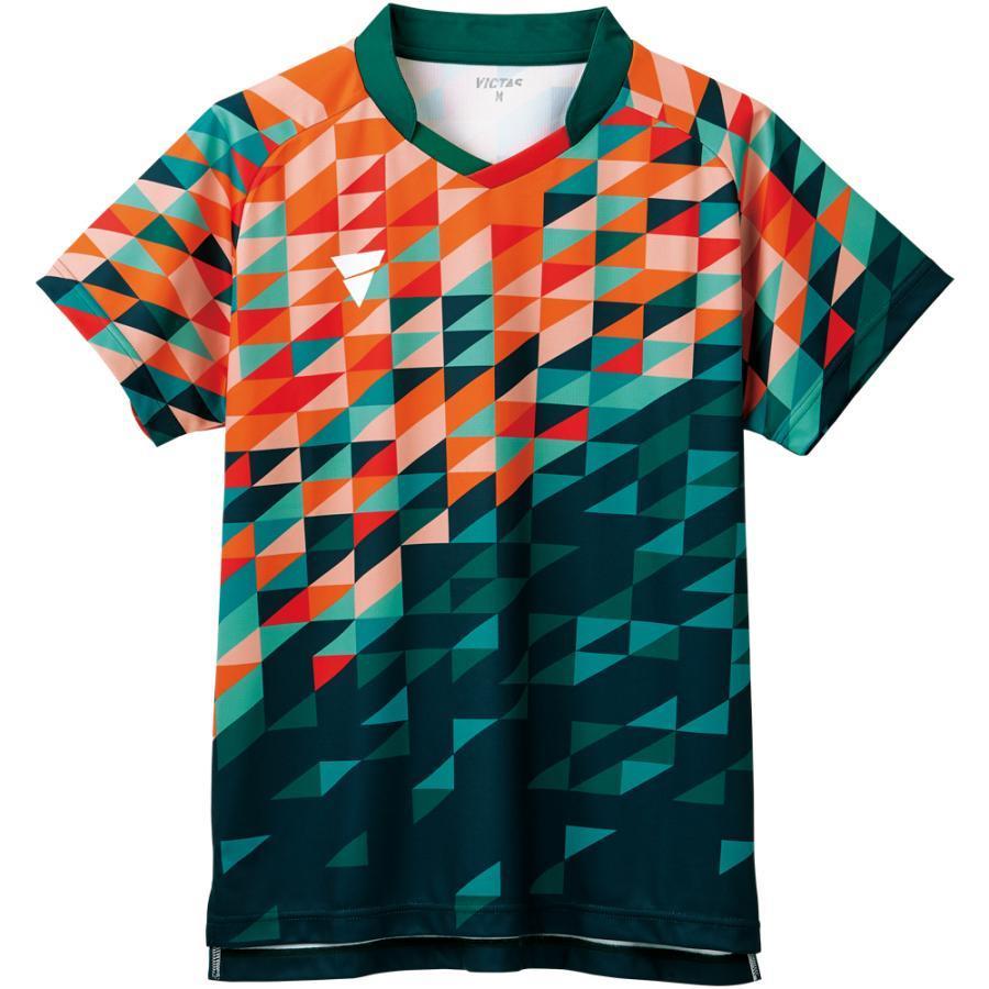 色番4020 GR×OR、色番9050 RD×BLの2色をVICTAS契約選手が全日本選手権で着用。肌触りがよく吸汗速乾性に優れた軽量の素材を使用したゲームシャツです。New Colorとしてグリーンとレッドを採用しました。2面によるVICTASのアイコニックデザインを取り入れ、新しい造形と色幅に挑戦したデザインです。V-GP221とのセットアップデザインです。