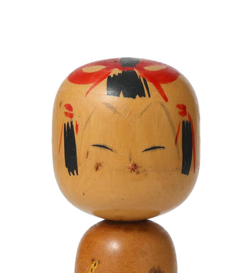 ★素材:木★コンディション:経年によりくすみ、シミがあります(写真をご覧ください)★サイズ(約):・高さ 15.5cm / 6.10inch・直径 頭5cm / 1.96inch、胴3.5 cm / 1.37inch・重さ 108.0g※パソコンやスマートフォンなど、ご覧になられる環境により商品写真の色と実際の色が異なる場合があります。どうぞご了承ください。★お取り扱いについて★※こけしの顔や模様は水性染料で描かれているため、たいへん水に弱いです。色落ちを避けるためにも、お掃除の際は乾いた布で拭いてあげてください。※こけし本体は木でできています。急な乾燥や直射日光、エアコンなどの暖房器具の近くを避けてお楽しみください。また、あまり湿気の多い場所ですとカビが生えることがありますのでご注意ください。