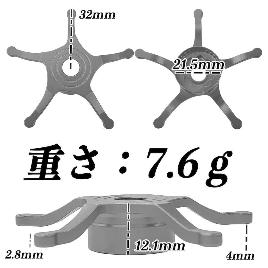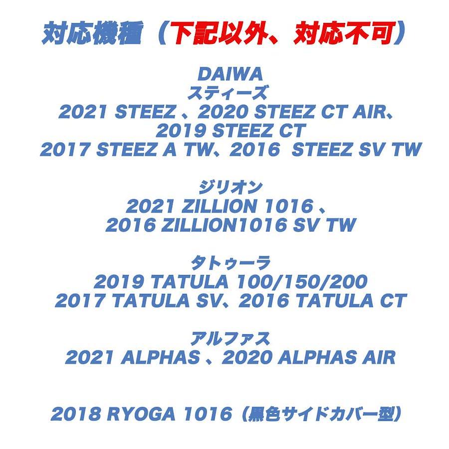 【素材】アルミニウム合金製 【重さ】約7.6g【対応ハンドル】左ハンドル/右ハンドル共用【対応機種1(下記以外、対応不可)】DAIWA スティーズ 2021 STEEZ 、2020 STEEZ CT AIR、2019 STEEZ CT 2017 STEEZ A TW、2016 STEEZ SV TW、ジリオン 2021 ZILLION 1016 、2016 ZILLION1016 SV TW、2018 RYOGA 1016(黒色サイドカバー型)、タトゥーラ 2019 TATULA 100/150/200 、2017 TATULA SV、2016 TATULA CT、アルファス 2021 ALPHAS 、2020 ALPHAS AIR