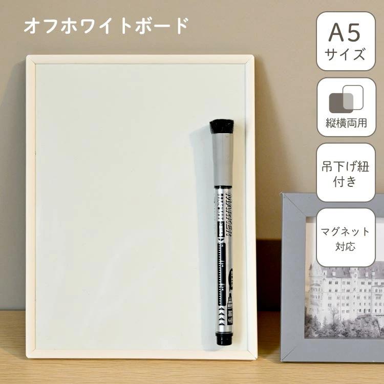 【オフホワイトボード】縦横で壁掛けとマグネット貼り付けが可能なA5サイズホワイトボード。一般的なホワイトカラーではなく目に優しいオフホワイトカラーを使用しており、部屋のインテリアに馴染みやすく見やすい仕上げに。吊り下げ用金具と紐、クリーナーとマグネット付きのボードマーカーが付属しています。