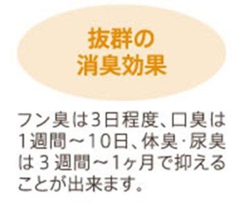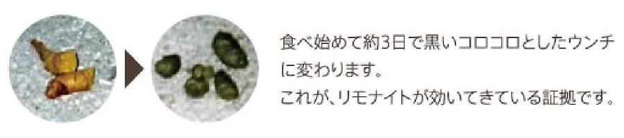 食いつき抜群!!超小型犬向けに、超小粒の柔らかめ仕上げ。おやつとしてワンちゃんが美味しく食べるだけで、驚きの消臭効果を実感できます。リモナイトの鉄分が、お腹の中で臭いのもとを吸着し排泄していくので、食べて2~3日でフンが黒くなるのが、消臭効果が出てくるポイントです!