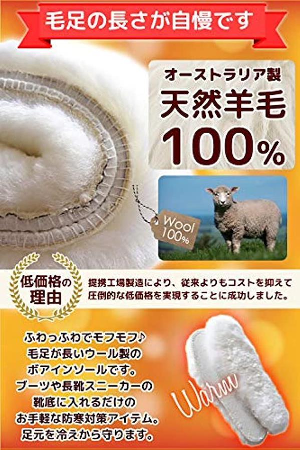 ・メイン素材: ウール・表地: オーストラリア産 天然羊毛100%・v「 ❗やみつきになるボアインソール ❗」寒い季節の防寒に この上なくオススメする、オーストラリア産天然ウール100%の とにかくあたたかい 極厚インソールです。