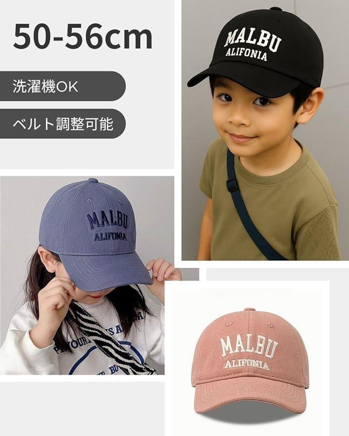 「子ども用ロゴカラーキャップ」ブラック、ダークブラウン、キャメル、ブルー、ピンク「帽子サイズ」頭周り(内寸)50cm~56cm、高さ15cm、つば6.5cm