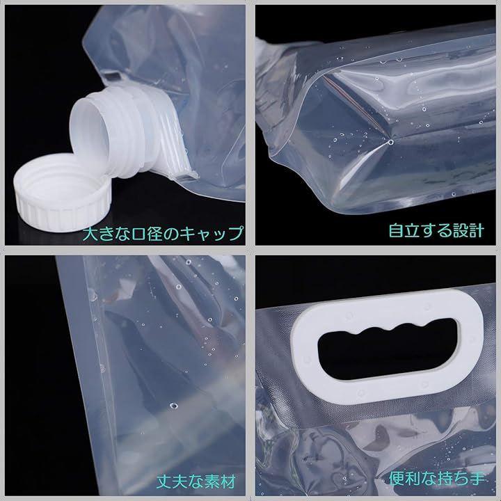 ポリ缶のように容器の重さがないので軽く、5リットルサイズなので水を入れても女性でも持ち運ぶことができます。