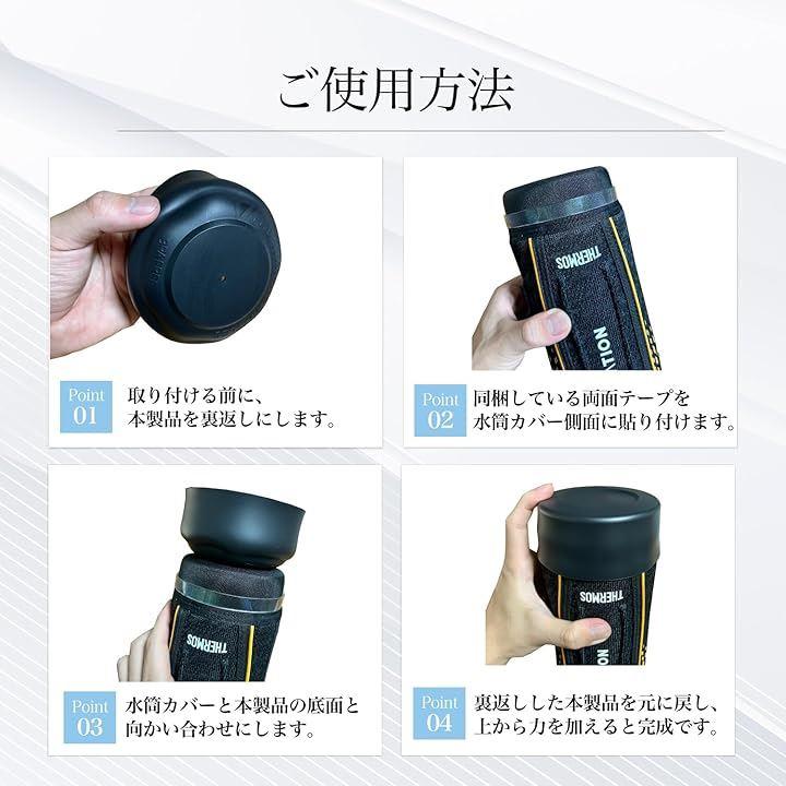 「水筒カバーでこんな経験ありませんか?」 水筒カバーの底が破れた 水筒の底抜けでケガの恐れがある カバーの買い替えは経済的に難しい 水筒カバーが滑りそうで心配 「そんなお悩みを解決します。」 本製品を着用する事で、水筒カバーの底抜けを予防します。