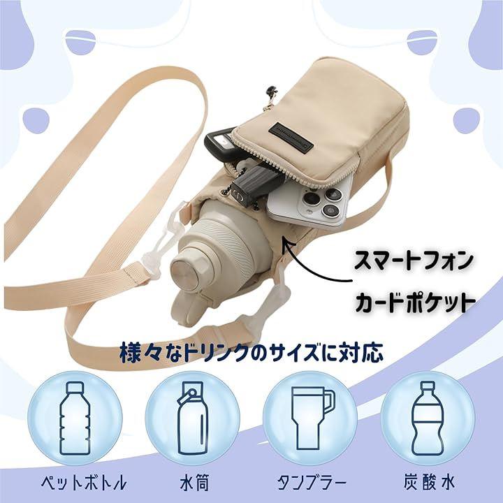 毎日の水分補給とスマホ収納を同時に解決。 ペットボトルと水筒がすっぽり入る、スマートなショルダータイプの水筒カバーです。