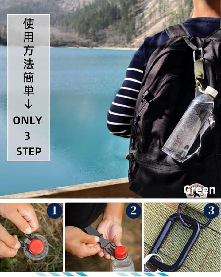 *カラビナクリップ:バッグ/ギアベルトへの瞬時アタッチ。