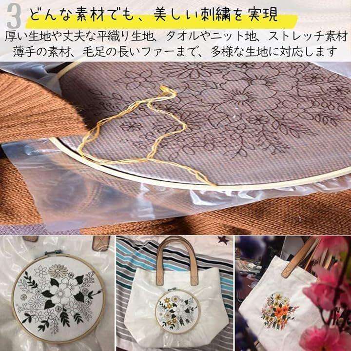 生地本来の風合いを損なうことなく、繊細な素材にも安心して刺繍を楽しめます。