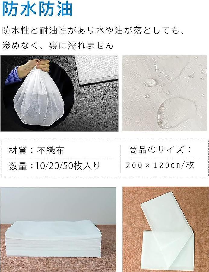 防水耐油:不織布の層とPEプラスチックフィルムの層であり、防水性と耐油性があり、相互汚染を効果的に回避でき、より安全で衛生的です。