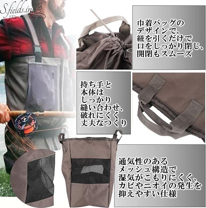 水や汚れに強く、ウェーダーや長靴などの収納に便利な防水仕様のウェーダーバッグです。