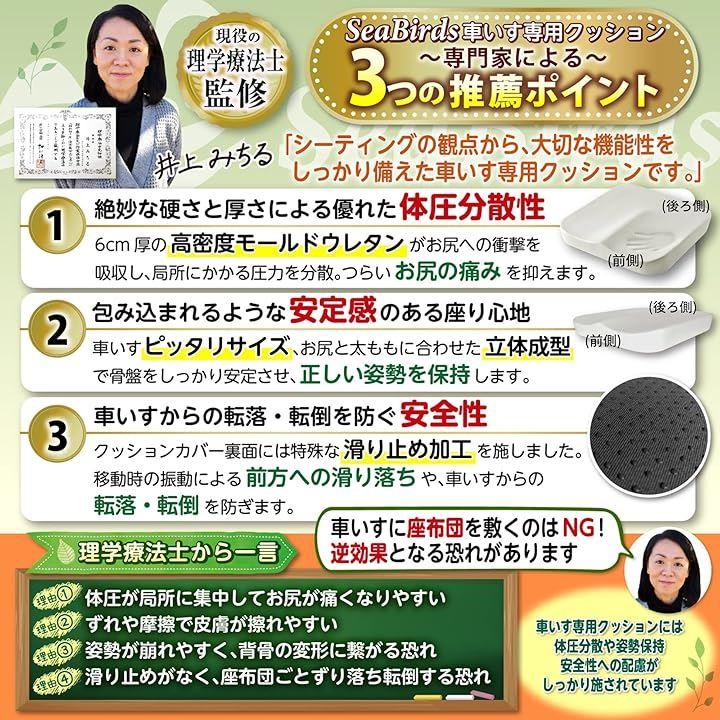 「現役の理学療法士監修」 「車いすの方々のお尻の痛みを和らげて、たくさんの人に笑顔になってほしい」 そんな想いから生まれた車いす専用クッションです。