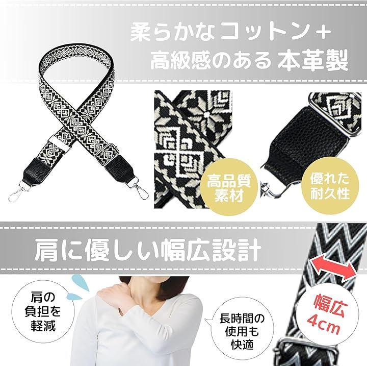 「高品質素材」柔らかなコットンと高級感のある本革を組み合わせた素材で、肩に優しく、長時間の使用でも快適です。