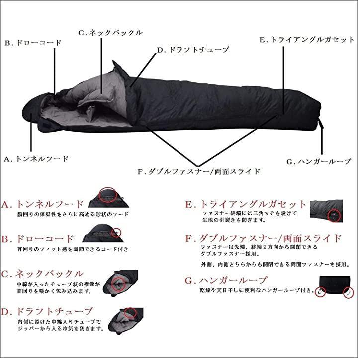 ・体にフィットするマミー型のシュラフにダックダウン90%とフェザー10%をたっぷり充填した耐寒-30度寝袋です。