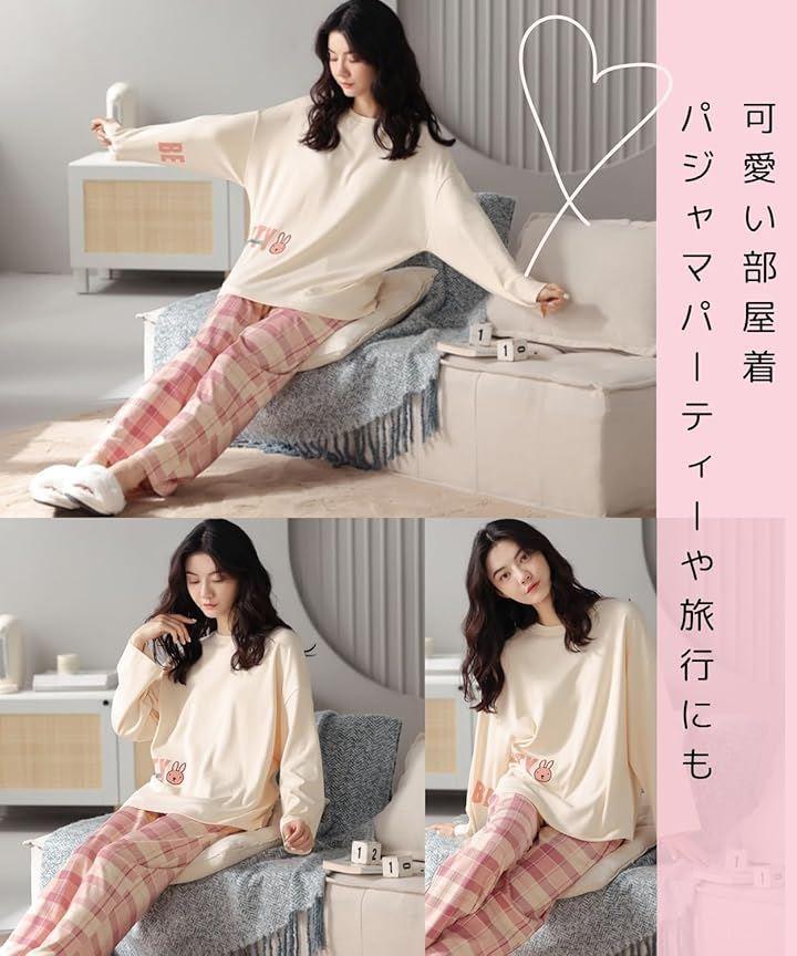 「可愛いデザインのおしゃれパジャマ」袖口のリボンや可愛いプリント柄で女性らしい雰囲気を演出。