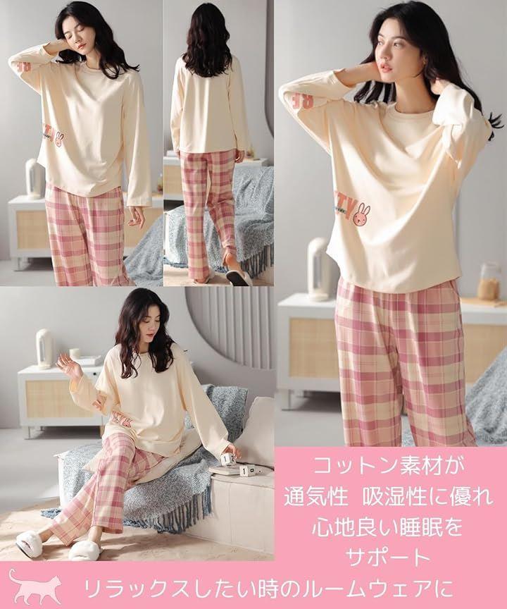 柔らかい薄手長袖の綿100%レディースパジャマは、一年中活躍するルームウェア 部屋着 ナイトウェアです。