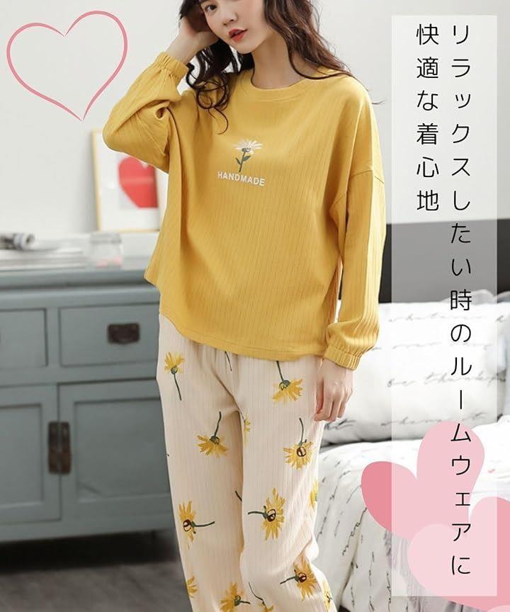 可愛い上下セットパジャマは、シンプルでナチュラルなデザインなので年代を問わず人気があり、ギフトにも最適です。
