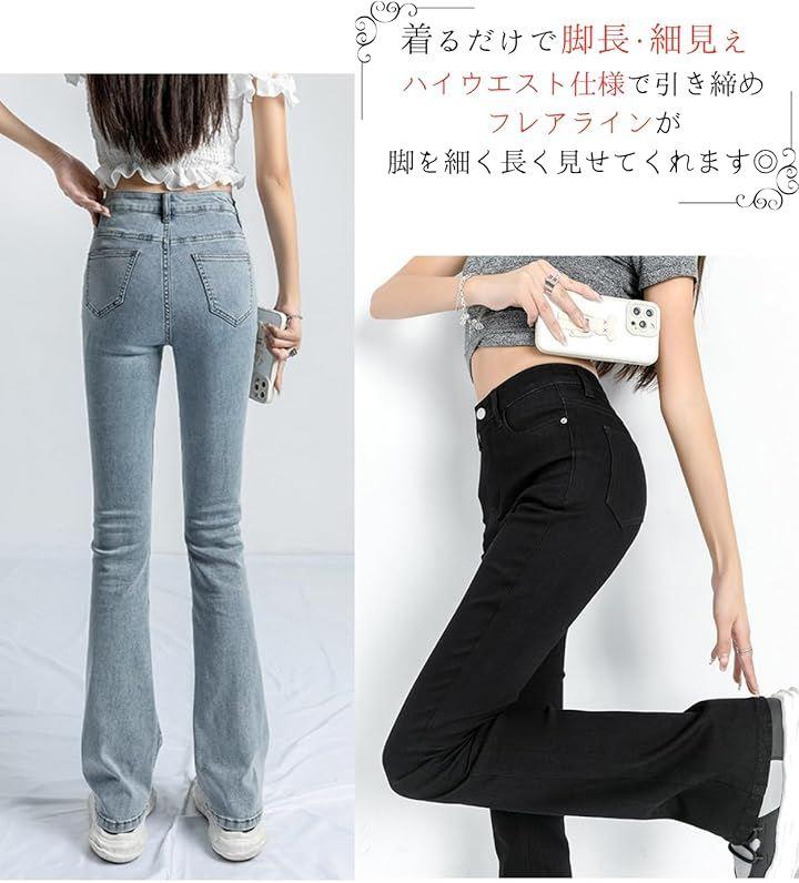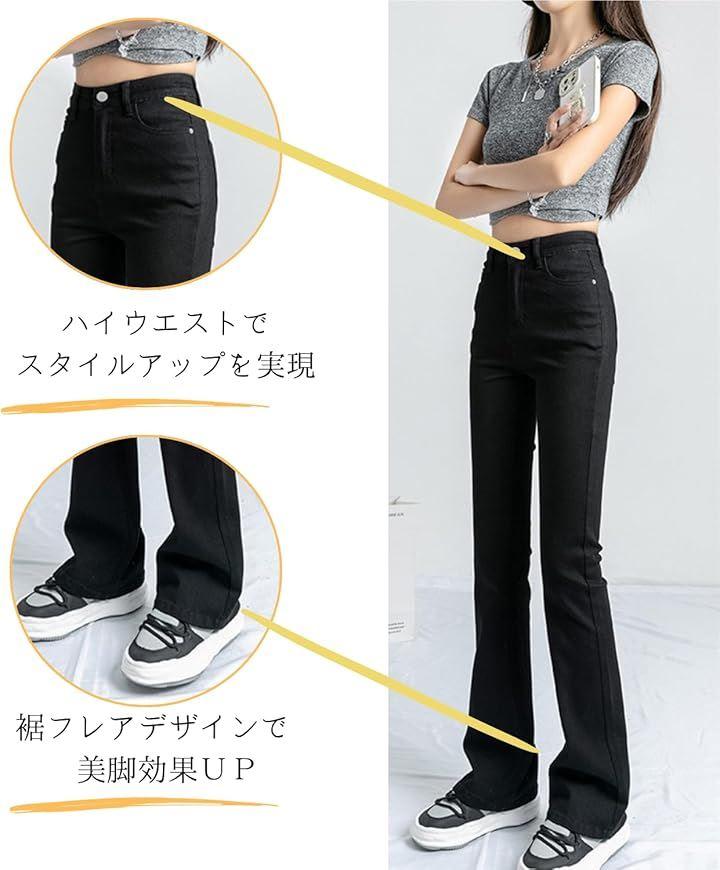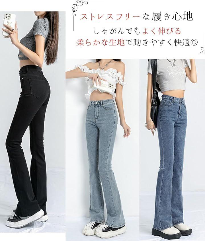 「商品の概要」美脚シルエットが魅力のブーツカットパンツ レディースは、上品なハイウエストデニム仕様で脚長効果抜群。