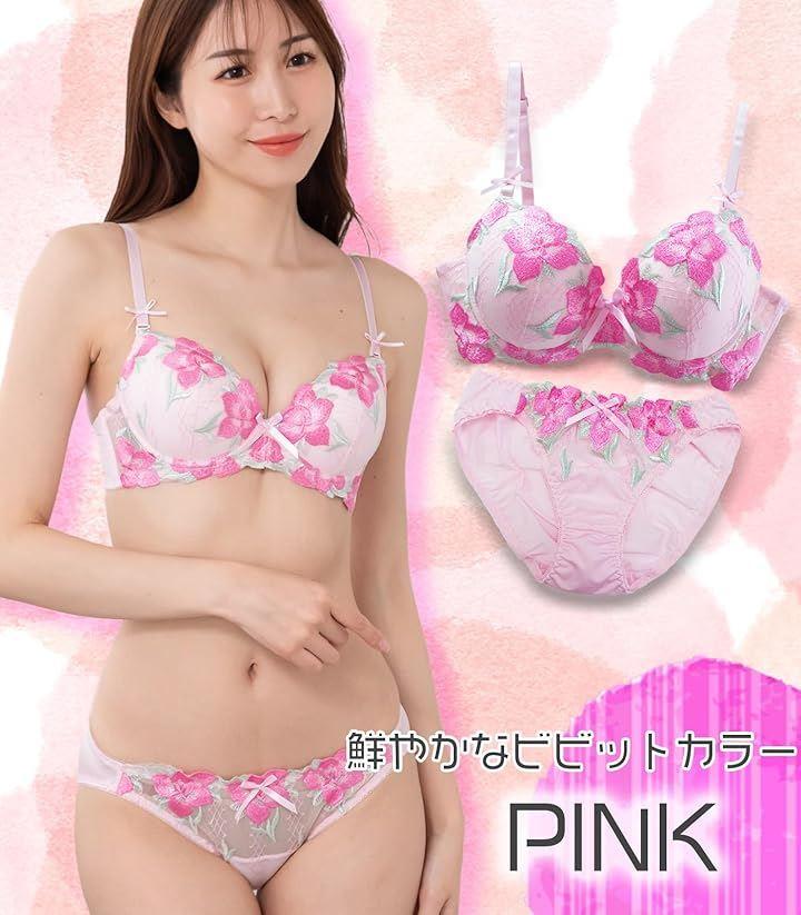 「特徴」脇高設計/大柄花柄刺繍/鮮やか/肩紐リボン/ストラップ調整可・取り外し可/パッドポケットなし/取り外しパッドなし/内蔵パッド付き/ワイヤーあり/サイドボーンあり/透け感・伸縮性あり/2列x3段ホック/E.Fサイズ3列x3段ホック