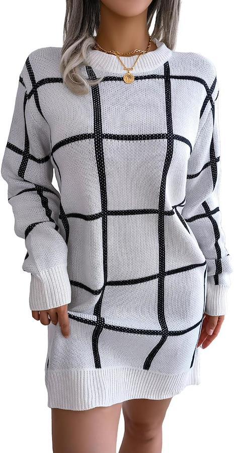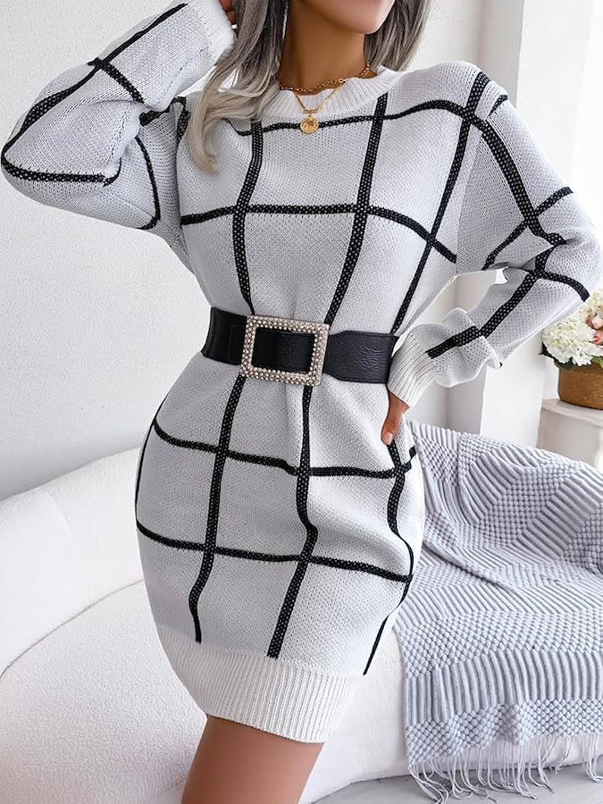 クラシカルなチェック柄デザイン。 シンプルながらも洗練された大きめのチェック柄が特徴のニットワンピース。