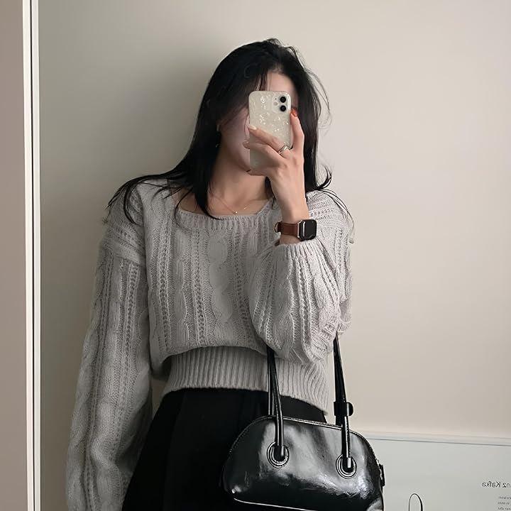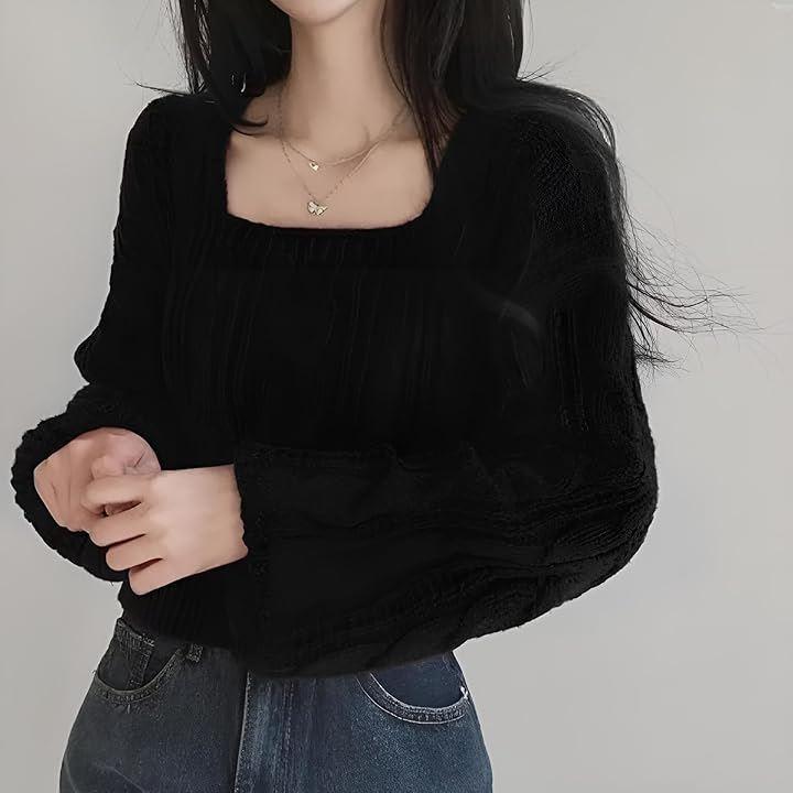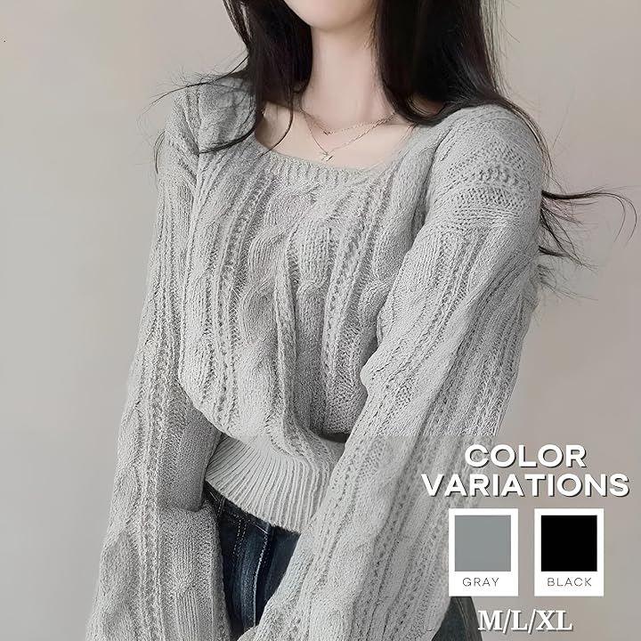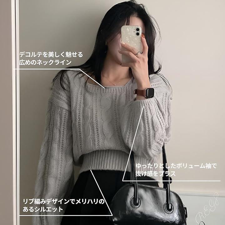 「商品説明」 ショート丈スクエアネックのニット トップスです。