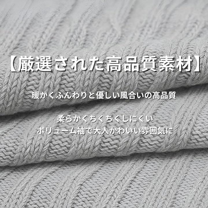 「特徴」 ケーブル編みの立体感が上品に見せます。