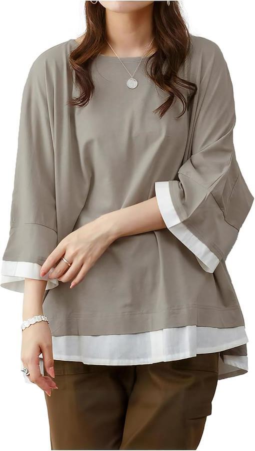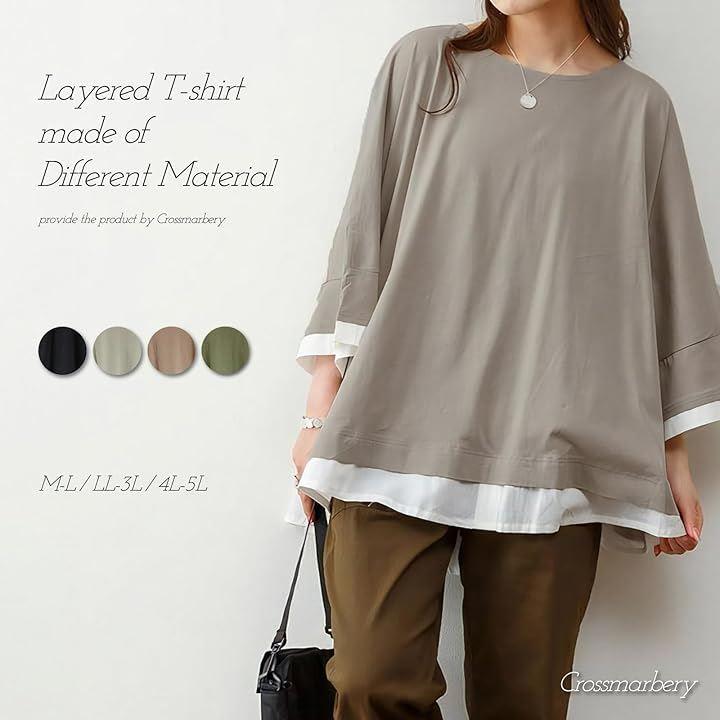 ゆるっと異素材レイヤードTシャツ 着まわし大活躍。コットン素材のレイヤードTシャツ