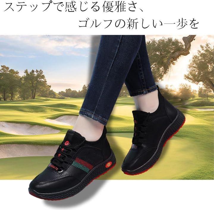 「スタイリッシュカジュアルスタイルデザイン」ゴルフシューズでありながら、日常にも溶け込むおしゃれなデザインが魅力。 機能性だけでなく、モダンなカラーリングと女性らしいシルエットを抑えたこのシューズは、ゴルフ場でも街中でもファッショナブルな印象を与えます。
