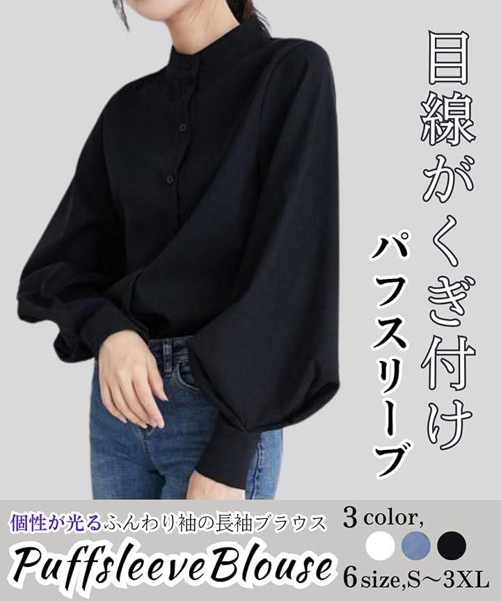 「レトロでクラシックな印象」袖口にかけてふんわりと広がった「パフスリーブ」の独特のシルエットが、とってもおしゃれで飽きのこないレディースシャツの紹介です。