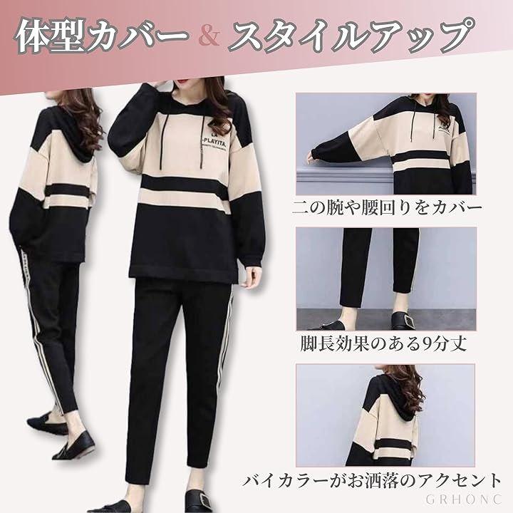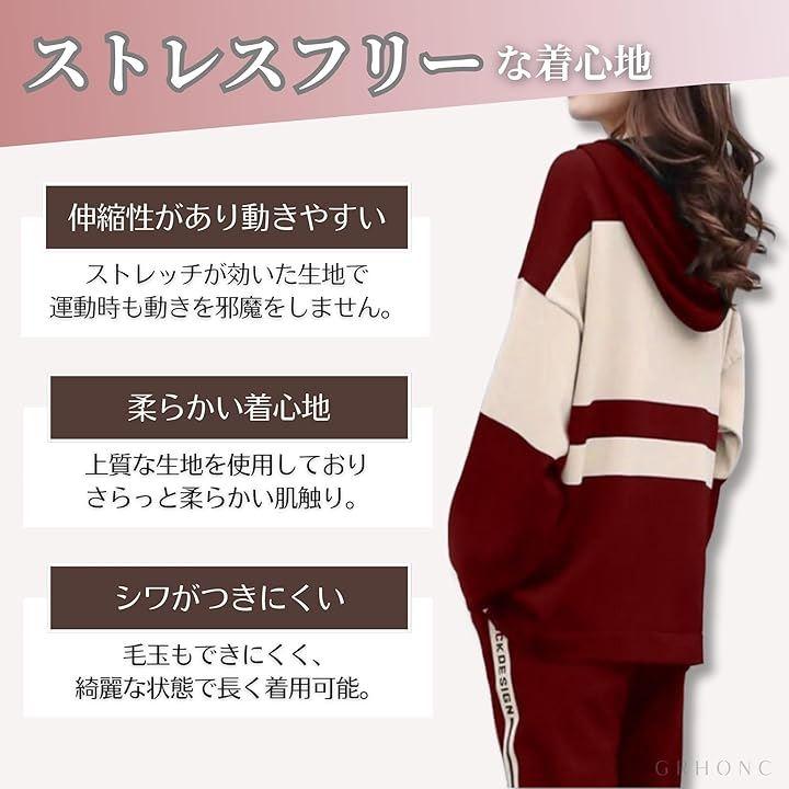 「商品特徴」パーカー&スウェットパンツの大人かわいいセットアップ。