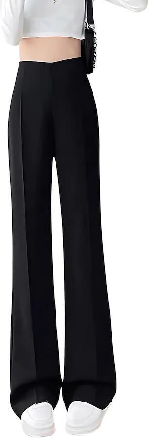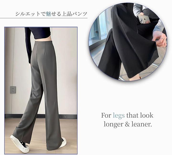ハイウエストデザインで美脚シルエットを演出する薄手ストレートパンツ。