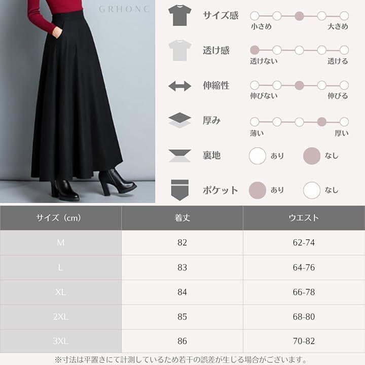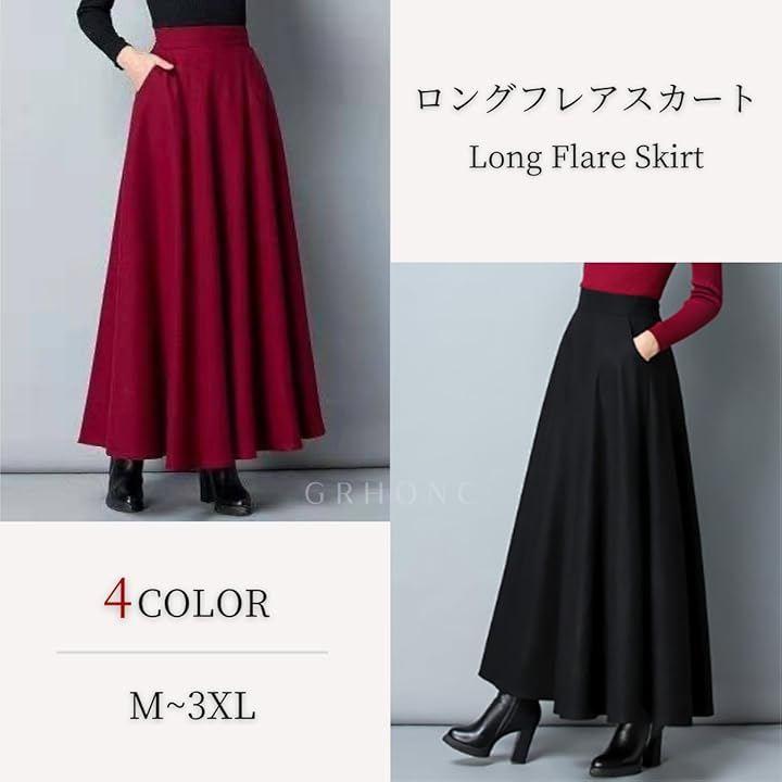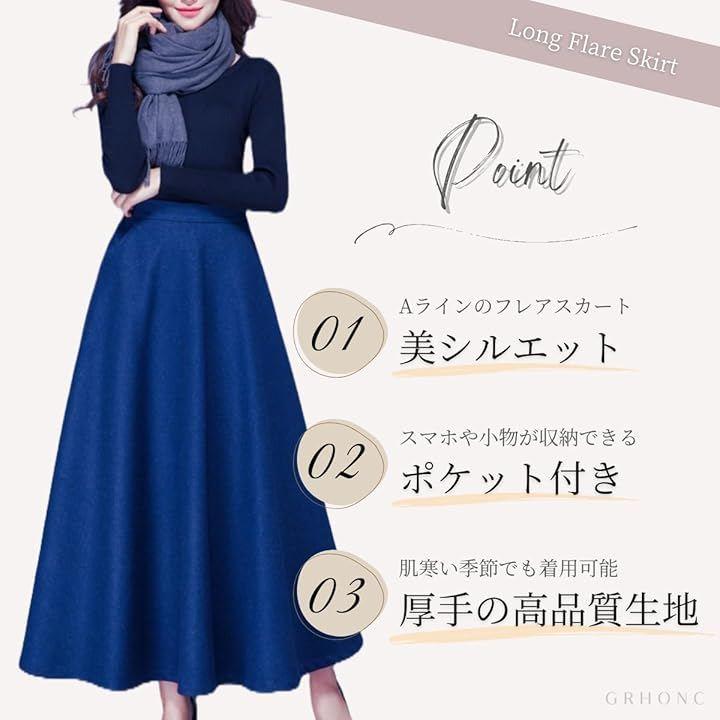 「商品特徴」美しいAラインのキレイめシルエットでありながら、フレアデザインが可愛らしさも演出するロングスカート。