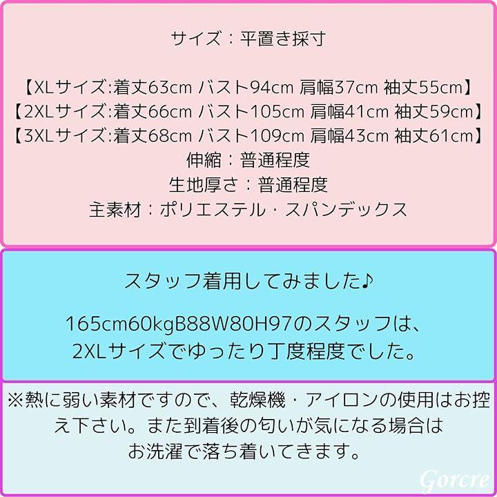 「スタッフ着用してみました」165cm60kgB88W80H97のスタッフは、2XLサイズでゆったり丁度程度でした。