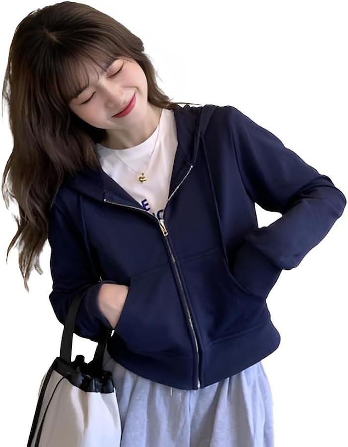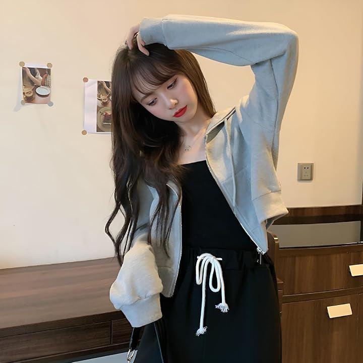 *「人気のへそ出しショート丈フード付きパーカーは、カジュアルでおしゃれなスタイルを叶える魅力的な必須アイテム。」ショート丈のデザインは、ラフなスタイリングが好きな方や韓国トレンド感を取り入れたい方にぴったりです。