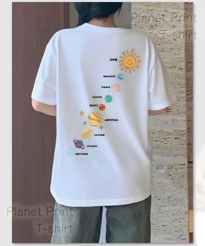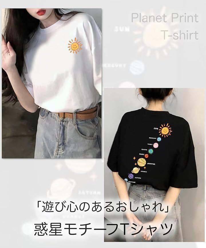 [ [ブブ オーハナ] Tシャツ フロント バック プラネット プリント カジュアル トップス レディース ]