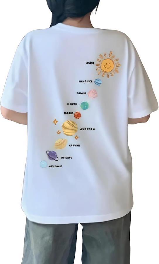 前はシンプル、後ろはインパクト。宇宙をまとうユニークTシャツ