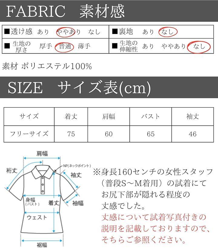 「素材」100% ポリエステル「カラー」ホワイト(白) グリーン(緑) ピンク(桃色) 「サイズ(cm)」FREE 着丈75 肩幅60 バスト65 袖丈46