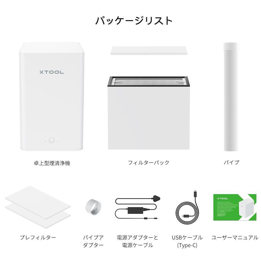 3営業日以内に発送≪新品未開封品≫:【xTool F1レーザー彫刻機専用煙清浄機】3層濾過システムを備えており、99.97%の浄化率を達成し、xTool F1 レーザー彫刻機専用に設計されています。HEPA 空気清浄機は、レーザー彫刻機からの煙や破片を継続的に吸い込み、活性炭臭気吸収材を含む 3 層の H13 HEPA フィルターを通過させて、レーザー彫刻から発生する有害なガスや不快な臭いをすべて捕らえます。【組み立て済み、簡単な操作、インテリジェントな設計】組み立て済みの煙清浄機は設置時間を節約します。 インテリジェントな設計により、ワンクリックで同期を開始できます。そして、HEPA清浄機は、xTool F1 レーザー彫刻機のプロセスで始まり、終わります。【ポータブルで静か、どこにでもフィット】xTool 煙清浄機は285*190*296mmのサイズで簡単に持ち運びできます。騒音レベルが 55dB 以下のヒューム抽出器は、屋内の家庭での使用、ガレージ、地下室、または作業場に適しており、あらゆる場所に最適です。【フィルター交換が簡単】面倒な分解や取り付け作業が不要です。必要なのは、簡単な交換と操作だけです。プレフィ