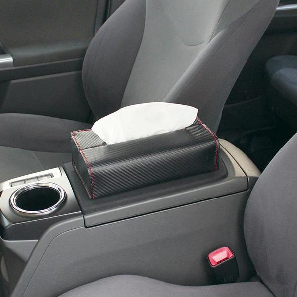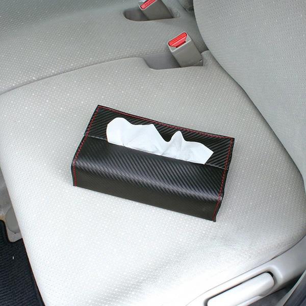 ●ポンと置いてもすべらないカーボン調のティッシュケース。