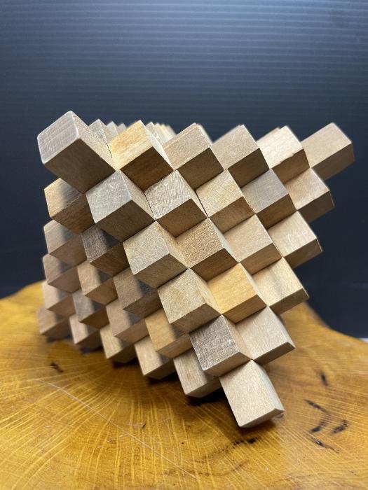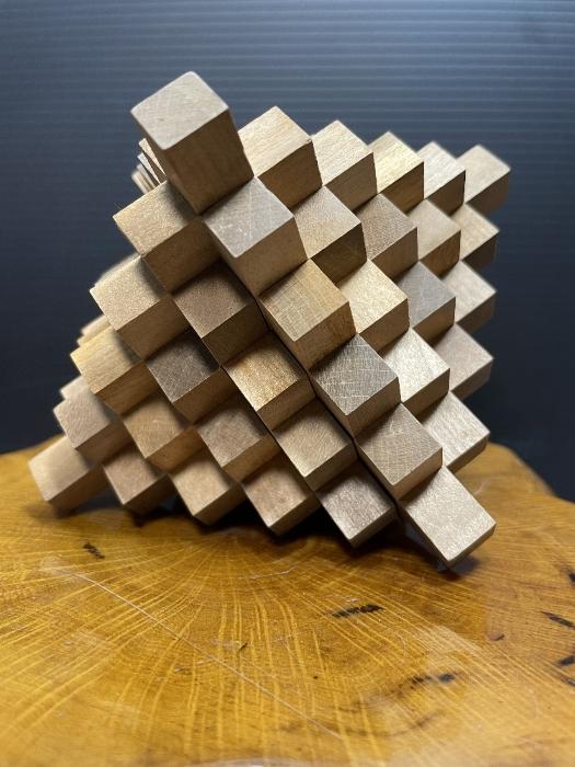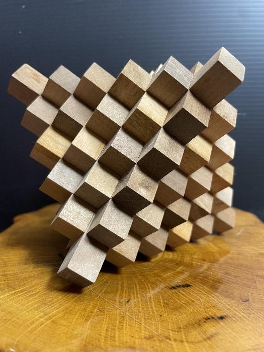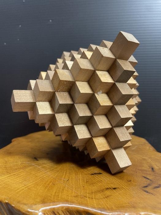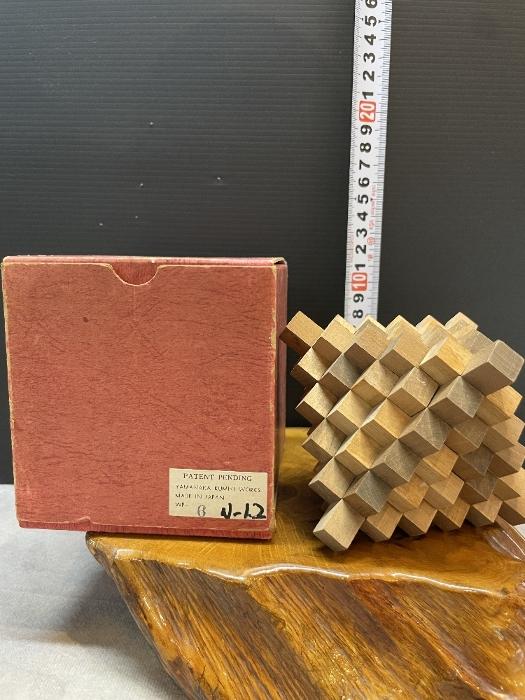 山中組木工房 YAMANAKA KUMIKI WORKS/木製 51本組木パズル大きさ約縦14cm×横約14㎝本体擦れあり。函ヤケ、シミあり。一度人手に渡ったものですので、神経質な方は入札をご遠慮ください。