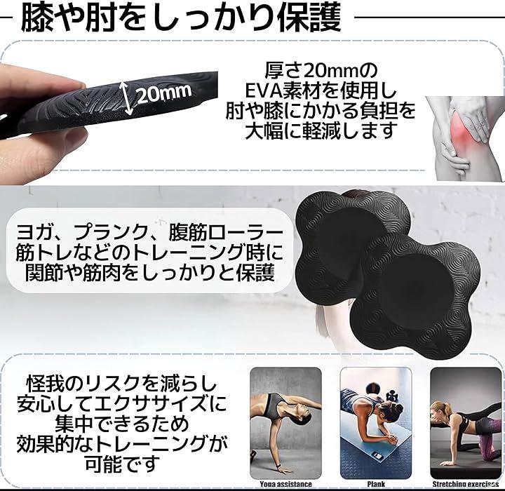 ヨガ、プランク、腹筋ローラー、筋トレなどのトレーニング時に、関節や筋肉をしっかりと保護。