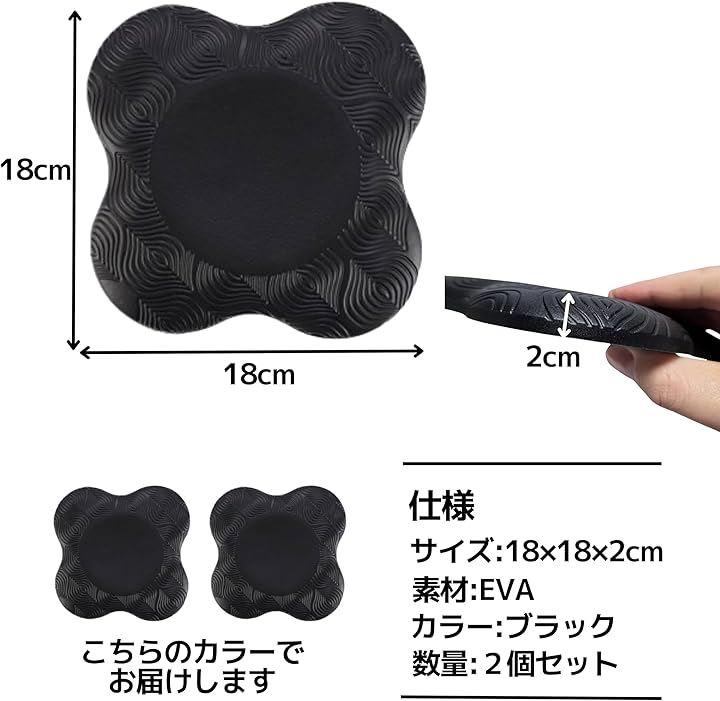 「仕様」サイズ:18x18x2cm、素材:EVA、カラー:ブラック、数量:2個セット