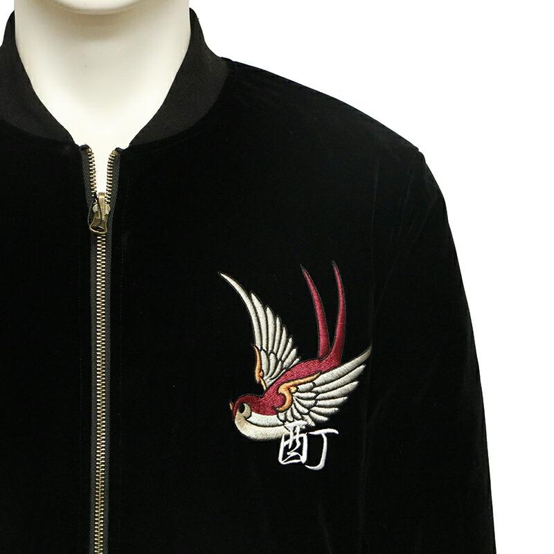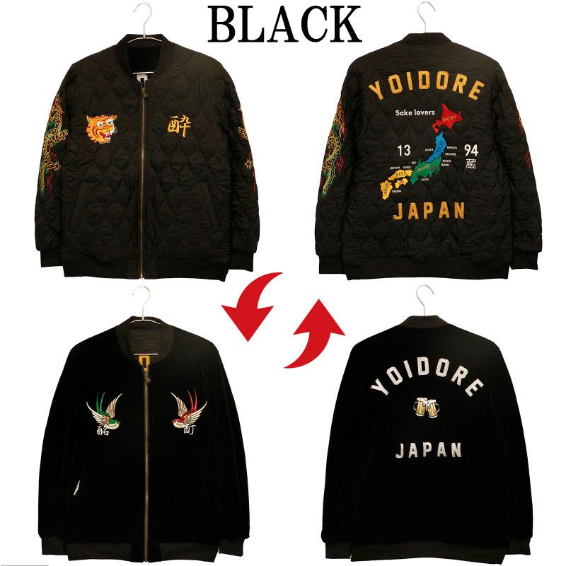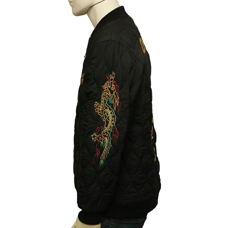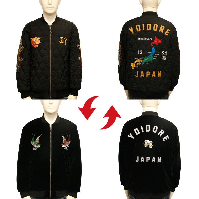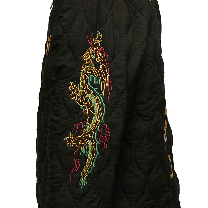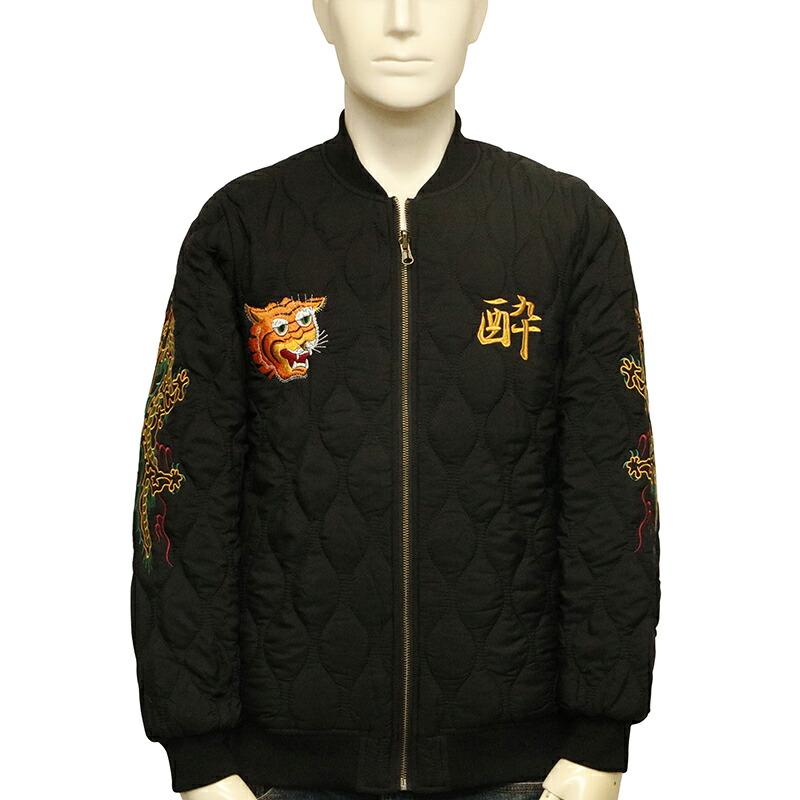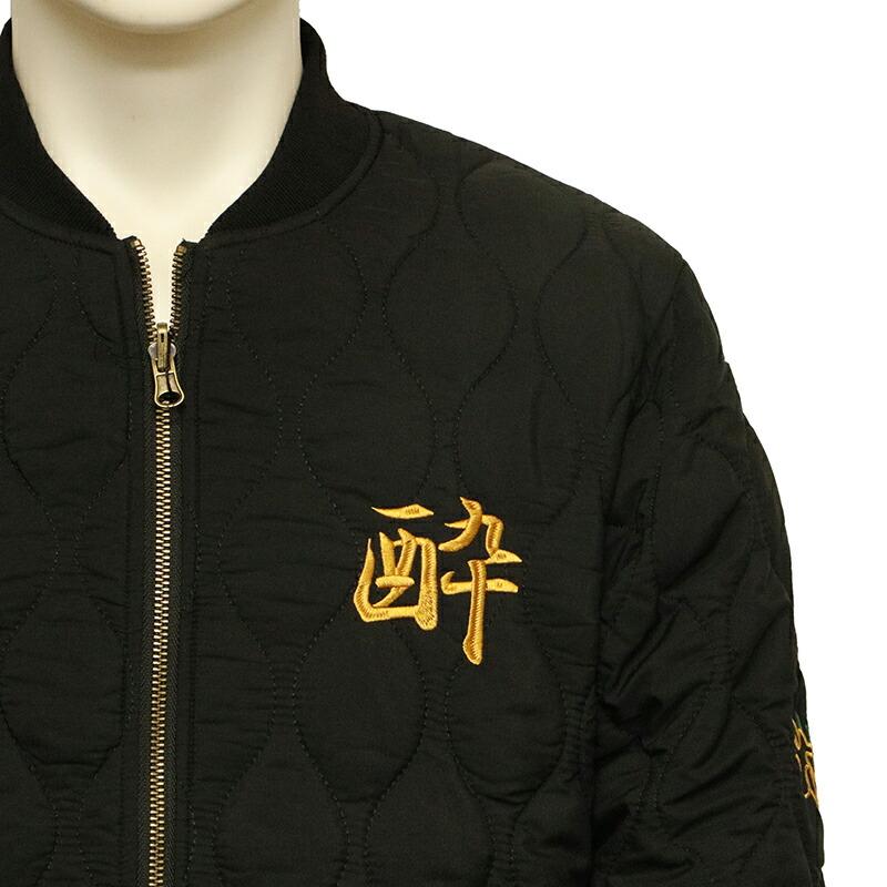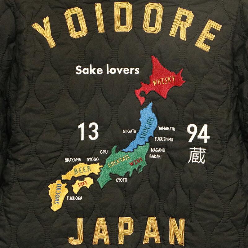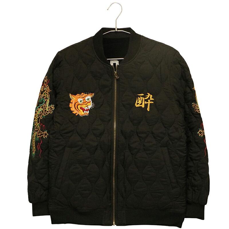 暖かみのあるウェーブキルト面はYOIDOREの代表的モチーフ「スーベニア」デザイン。胸には酔虎、袖には酔龍を刺繍であしらい、アグレッシブさを強調したミリタリーなアウターです。