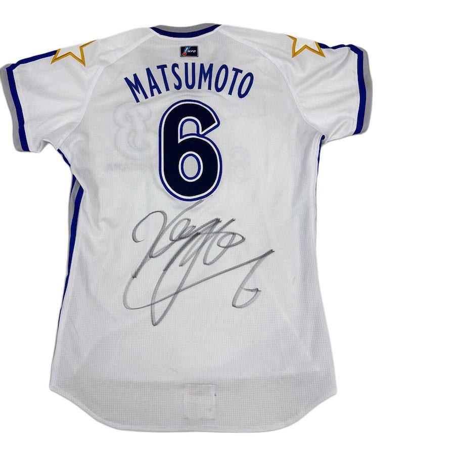 ■商品説明【チーム名】横浜DeNAベイスターズ【ブランド】DESCENTE【選手名:背番号】松本啓二朗【6】【モデル】プロ仕様【カラー】ホワイト【サイズ】O【備考】NPBマーク サイン入(サイン証明無)【状態】程度B