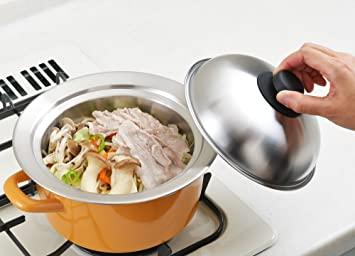 お手持ちのお鍋にのせれば蒸し器に早変わり。たっぷり蒸せるドーム型蒸ししゃぶ、温野菜サラダ、もちろん中華まんやシュウマイまであと一品欲しい時にも活躍しっかり深型のフタだから、たっぷり野菜がスチームできて、とってもヘルシー、とってもおいしいお手入れ簡単ステンレス製