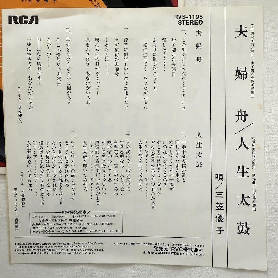 Yuko Mikasa "Fufubune" (Married Couple Boat) "Life Drum" Showa Era Vintage EP Record 7-inch Single Extended Play